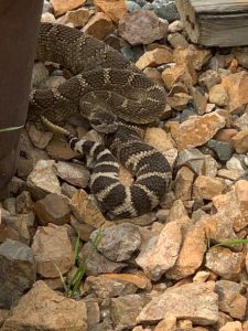 We live on the edge of a very large, protected area of grasslands, which is home to rattlesnakes (they’re also protected), so I imagine this fellow readily made his way back home from his explorations. 🙂